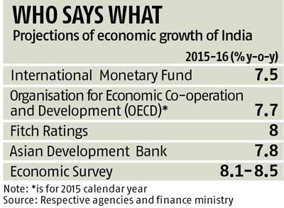 Earlier, the International Monetary Fund had forecast India's economy to grow by 7.5 per cent in 2015-16, while Fitch Ratings estimated an eight per cent growth.